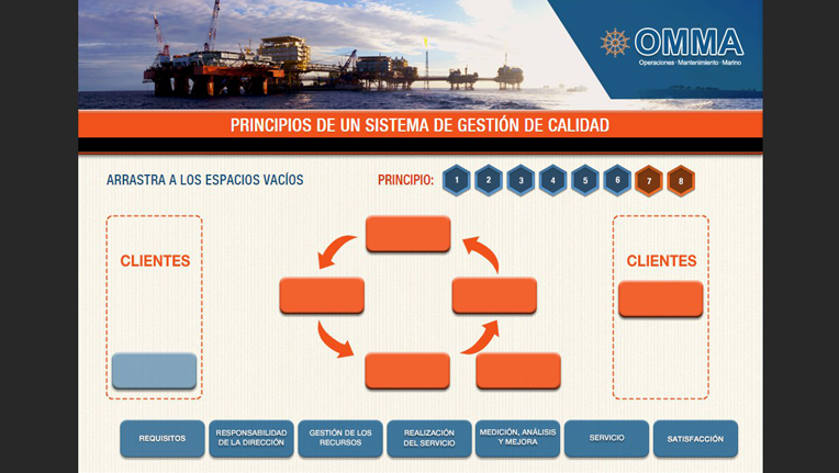 El objetivo del proyecto fue realizar la maquetación HTML5 y CSS3 además de la programación del e-learning en jQuery.